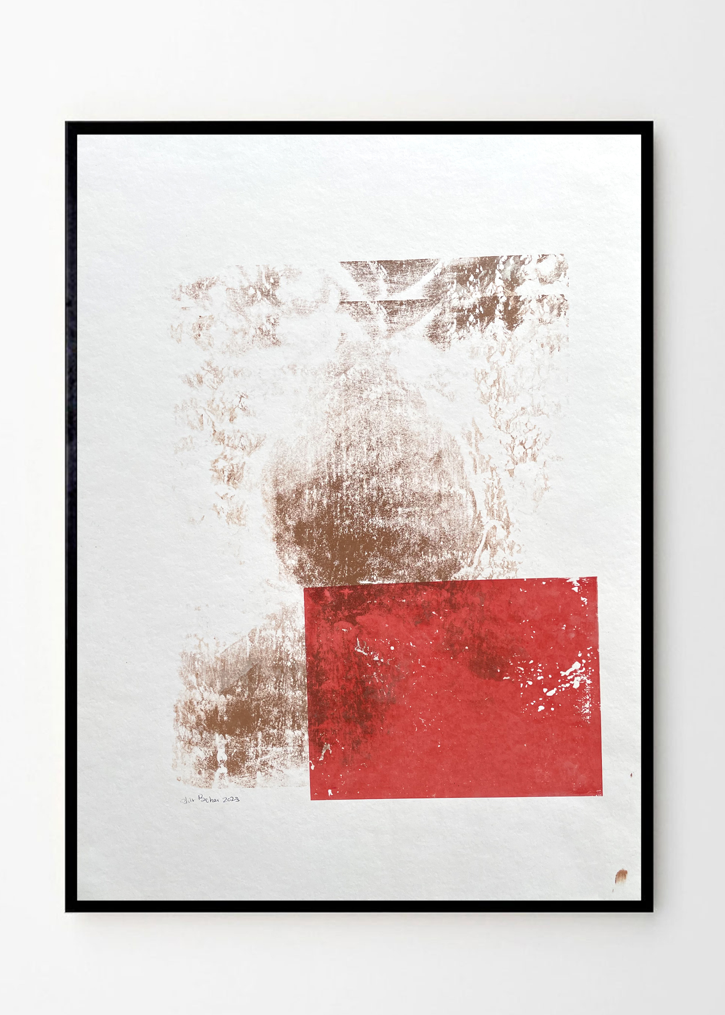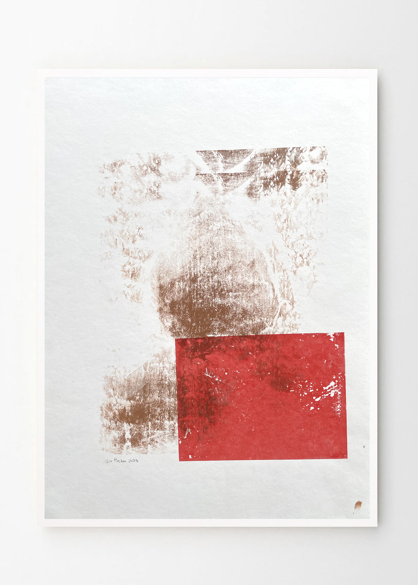 הדפס רשת Abstract Art Part 3 – שימוש בטכניקת הדפסה עם טלק ליצירת עבודה מופשטת בצבעי חום ואדום