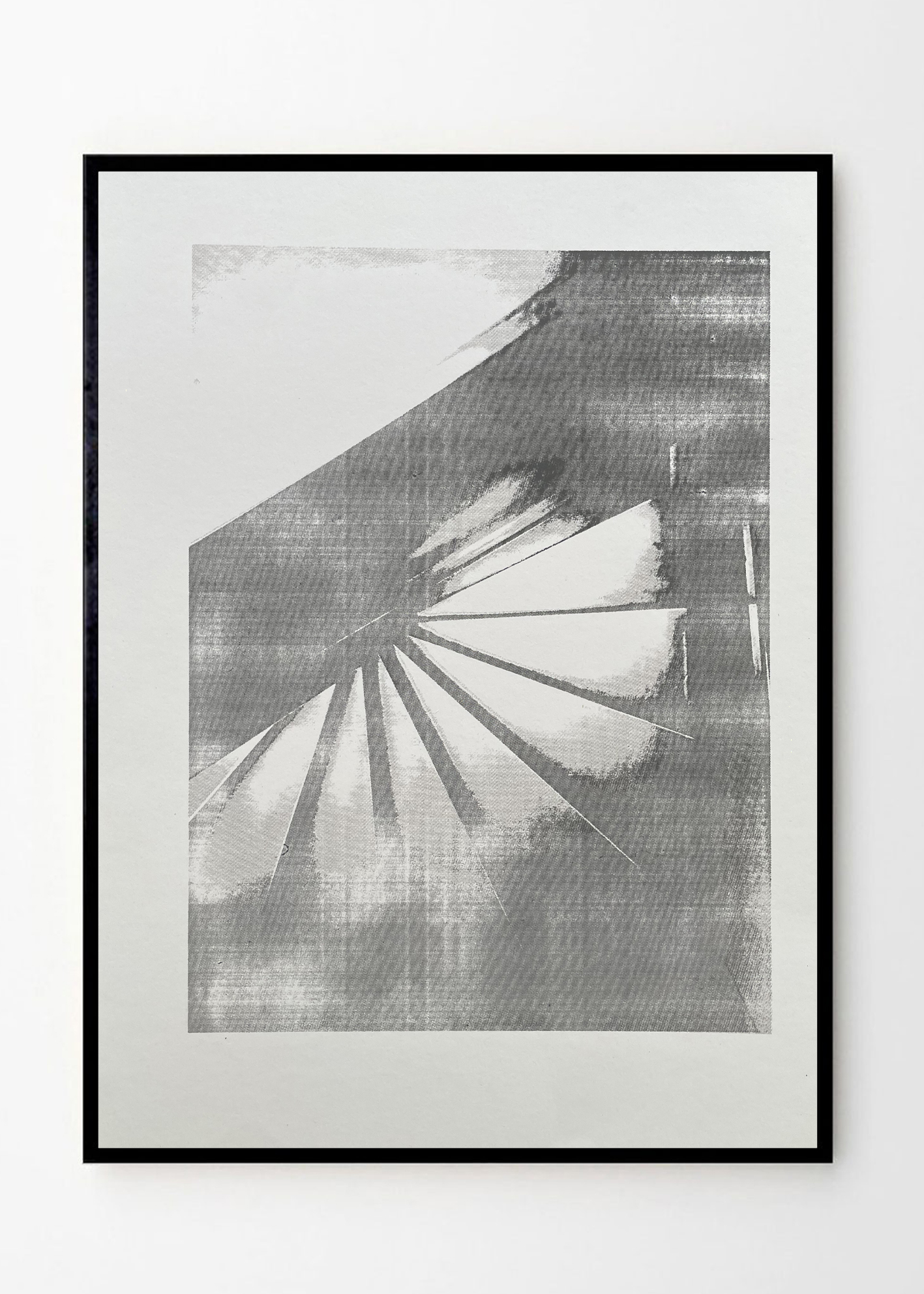 בהשראת הסגנון המודרני הנועז של גלריות פריז, ההדפס הזה נוצר מתוך צילום של גרם מדרגות פלדה מינימליסטי המרחף במרחב כפסל בפני עצמו. הצורה הגיאומטרית של המדרגות, והאור החודר ביניהן, יוצרים משחק של צללים ואור שמעניק לתמונה תחושת תנועה דינמית וחיתוכים חדים. המינימליזם והחזרתיות של הקווים יוצרים אפקט כמעט אבסטרקטי, שמדגיש את המתח שבין חוזק המתכת לקלילות של החלל. דרך נקודת מבט ייחודית זו, היצירה מזמינה אתכם לחקור את האסתטיקה של המודרניות והפשטות, במבט מרתק על אובייקט יומיומי שהופך לאמנות.