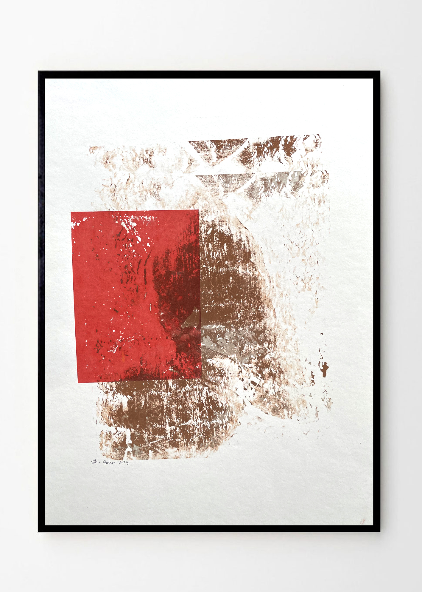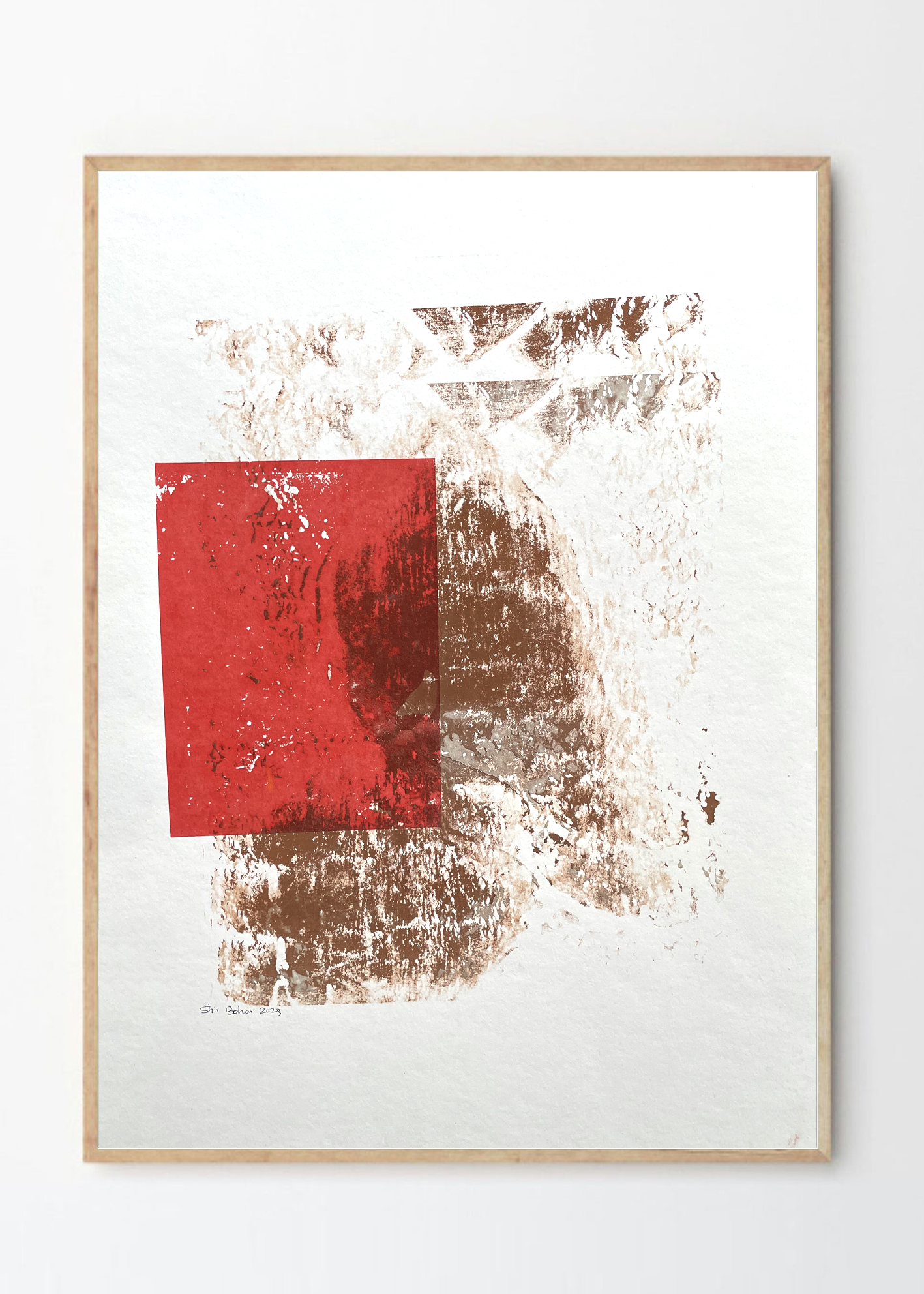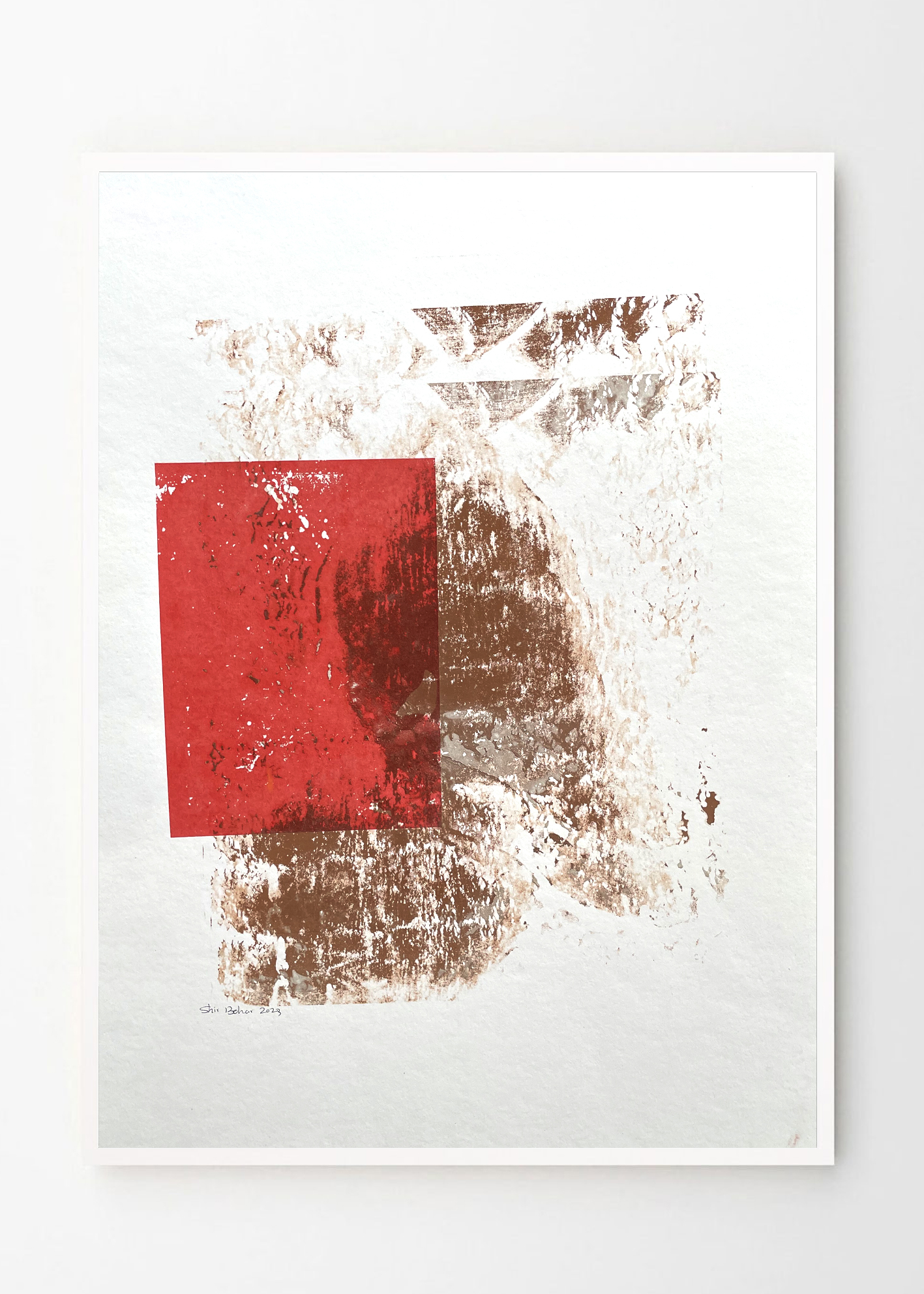 הדפס רשת Abstract Art Part 2 – שימוש בטכניקת הדפסה עם טלק ליצירת עבודה מופשטת בצבעי חום ואדום